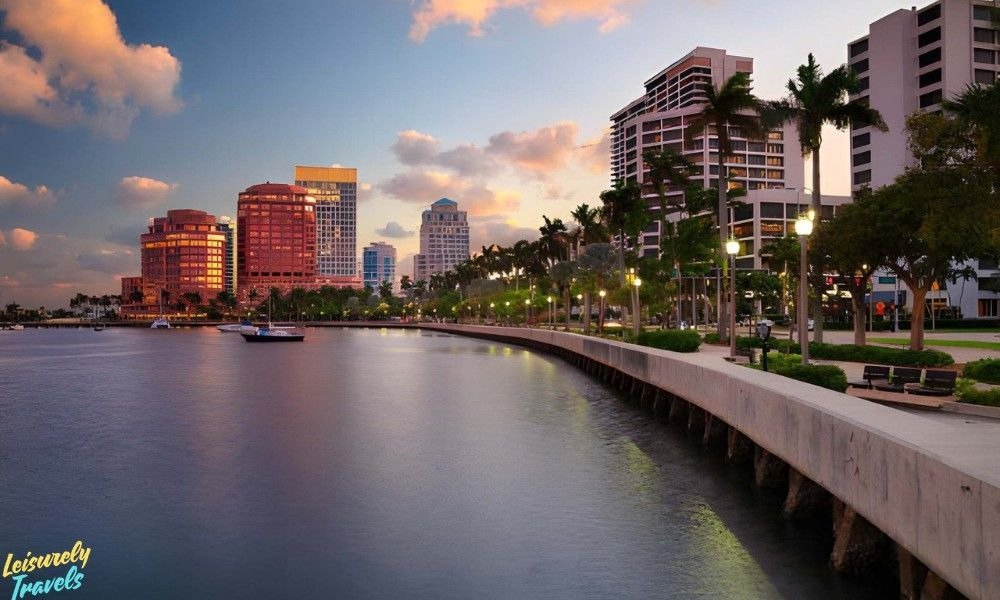 Notice the stucco walls and red-tiled roofs at sunset. Look for arched windows and grand columns near the entry. For an easy outing, walk around Mizner Park. It’s full of upscale boutiques and art galleries. I suggest light cultural exploration between naps and snacks.